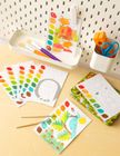 Perfect for ages 6+, all the materials come packaged in a brightly illustrated keepsake storage tin that can be reused. Inside, you’ll find 20 pre-printed sheets with line drawings to color, plus two wooden paintbrushes.